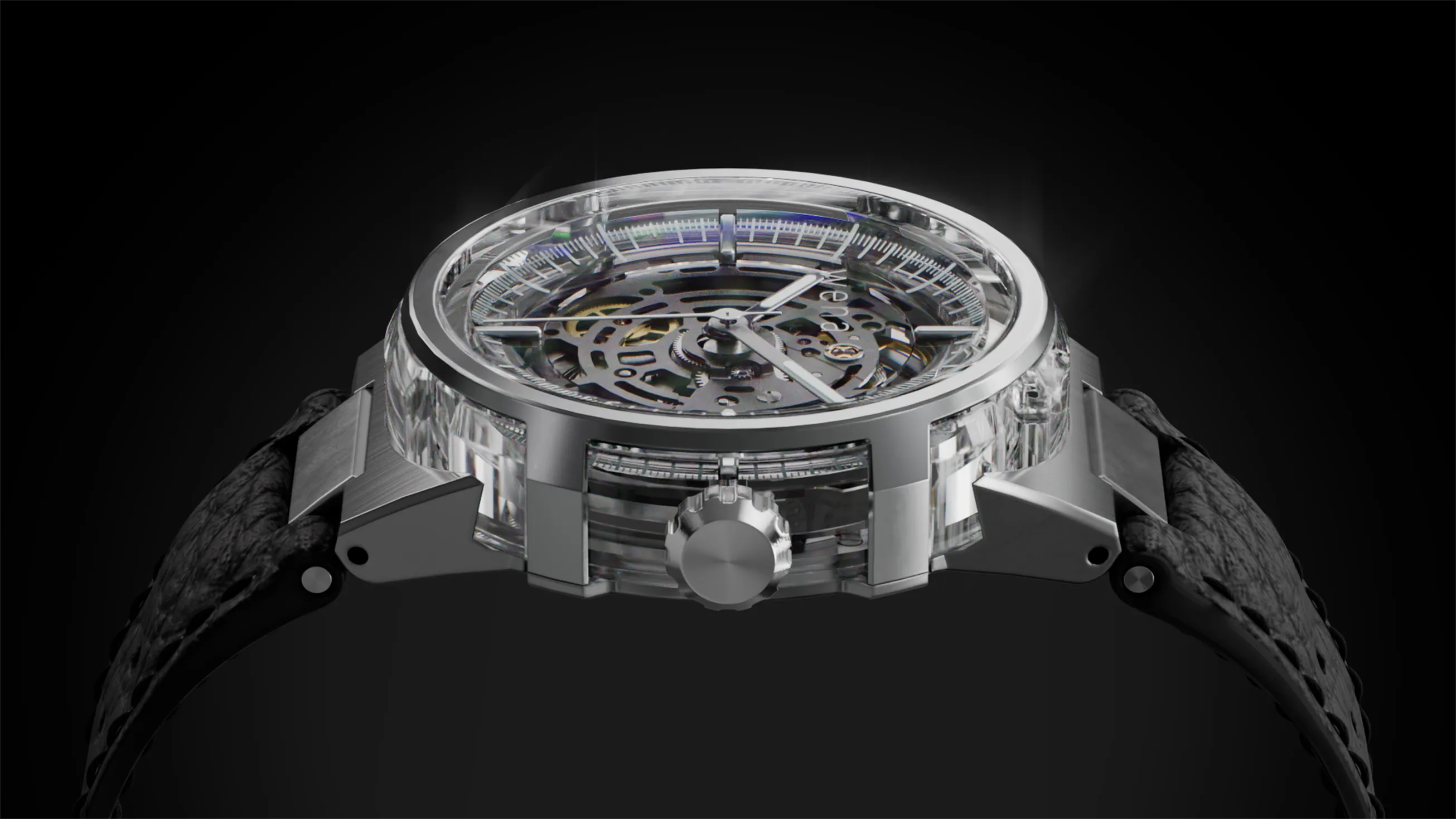 さらに本モデルでは、フルスケルトンを徹底的に追求するため、文字板そのものを半透明構造としました。
