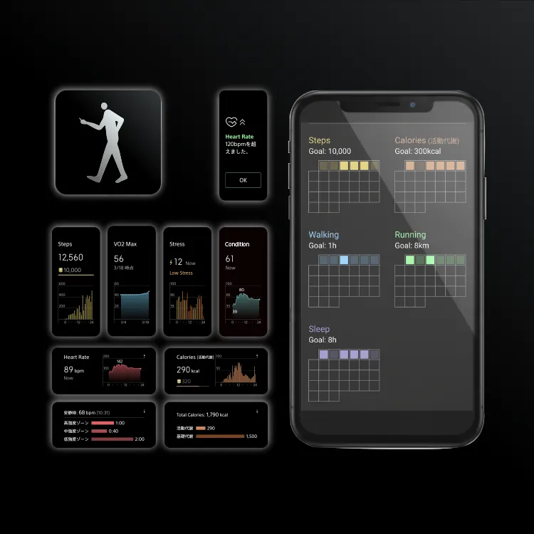 ※1本製品および関連アプリは、一般的なウェルネス/フィットネス目的で提供されるものであり、医療機器ではありません。