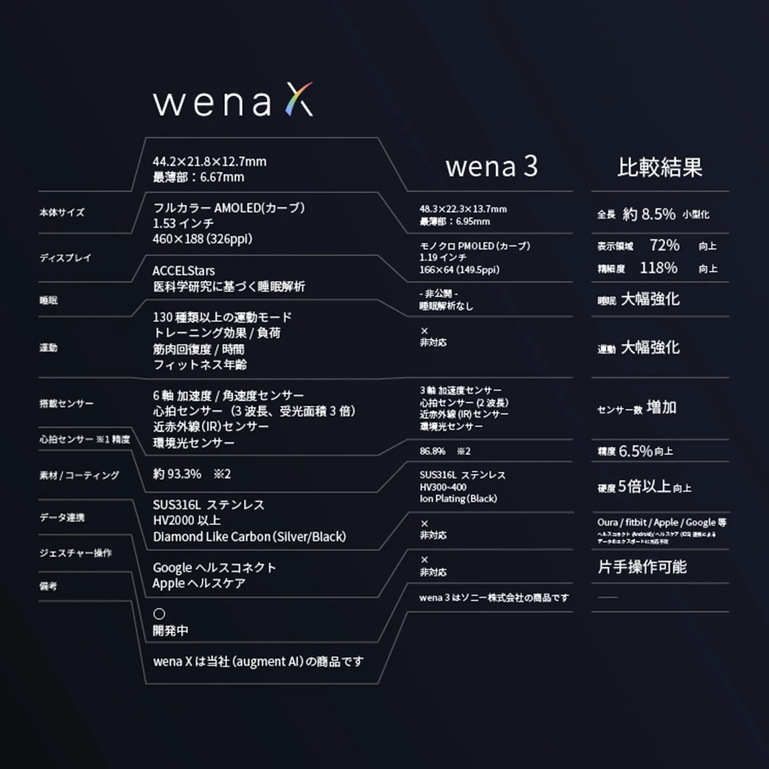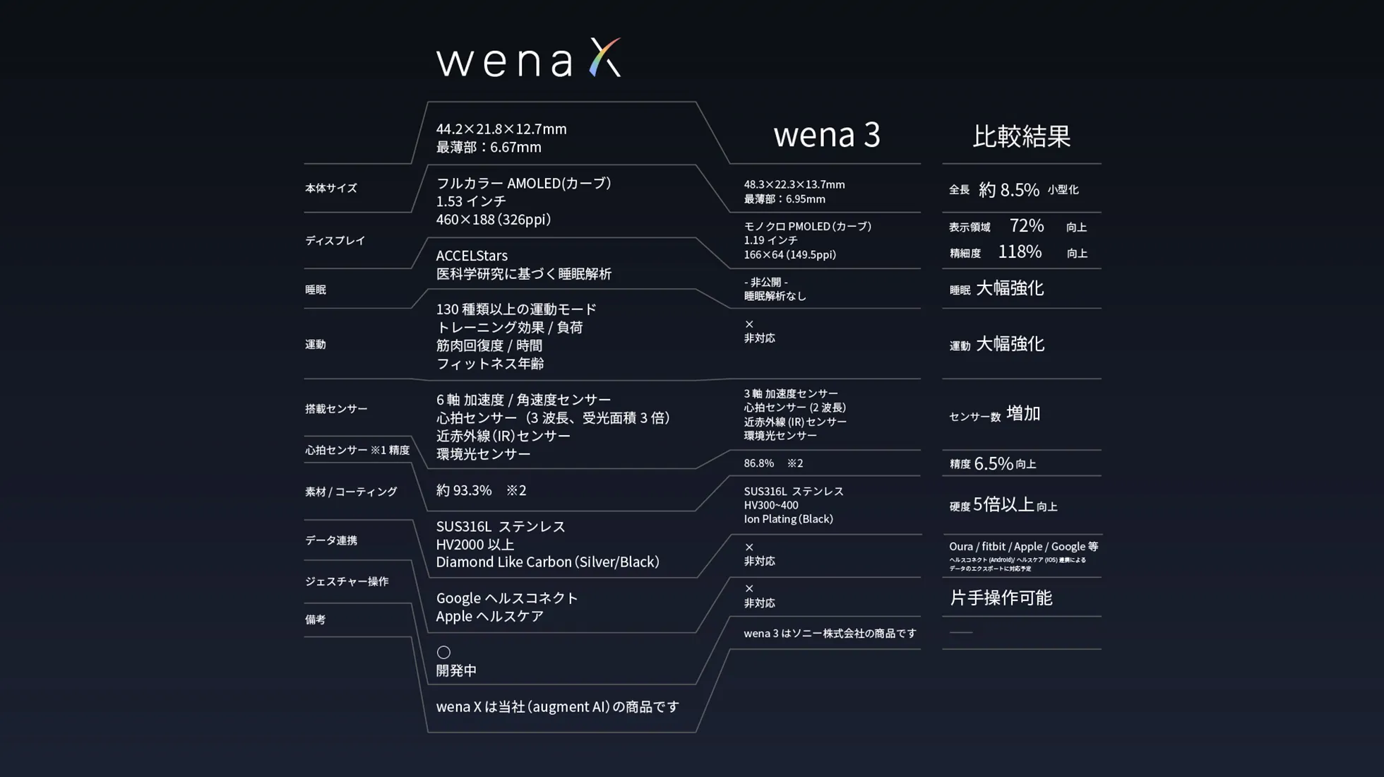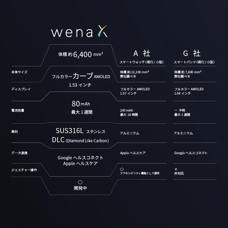 主要スペック(wena 3比較)